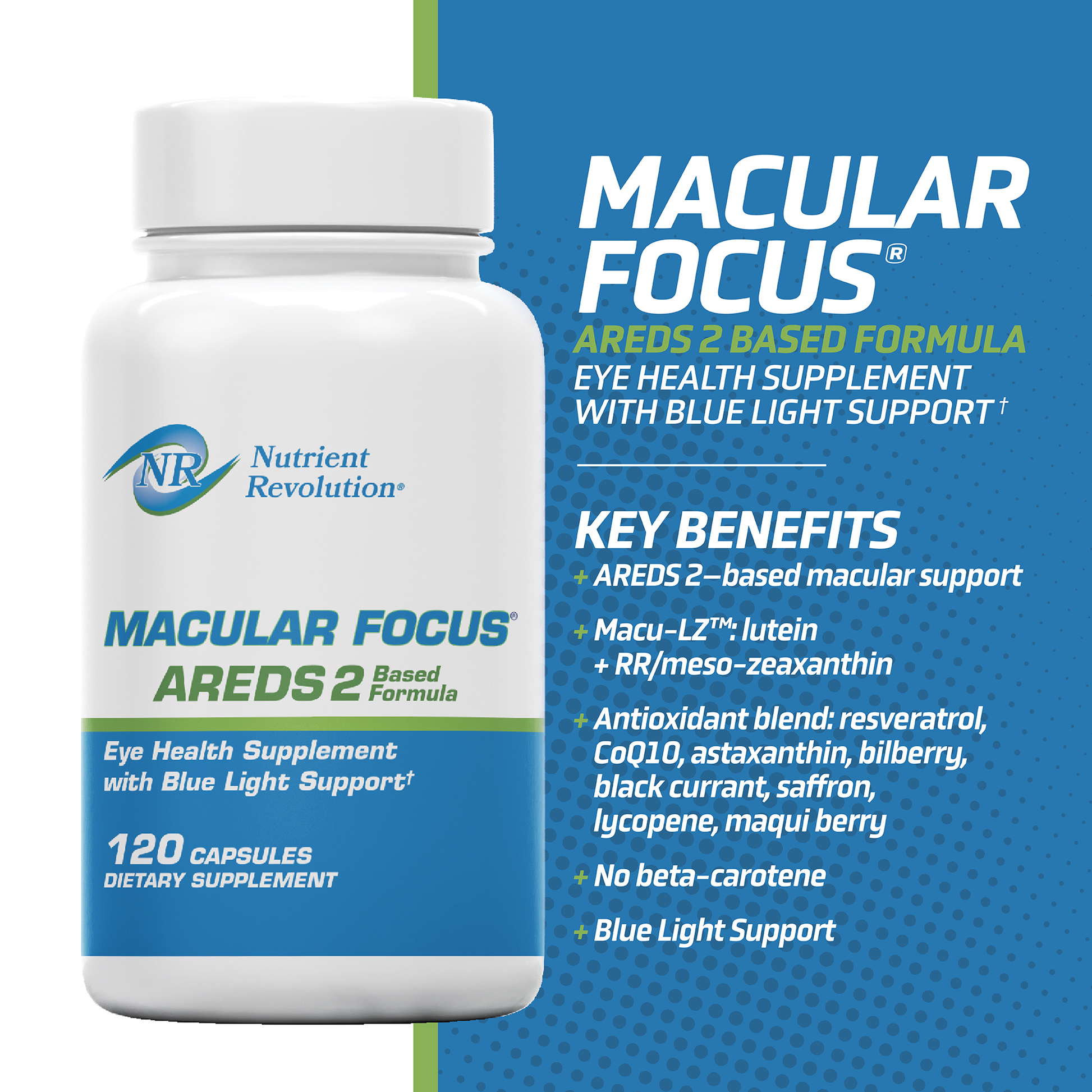 This formula includes Macu-LZ™, a blend of lutein, RR-zeaxanthin, and RS (meso)-zeaxanthin, clinically proven to support macular health, increase macular pigment density, and protect against harmful blue light from screens and modern lighting.